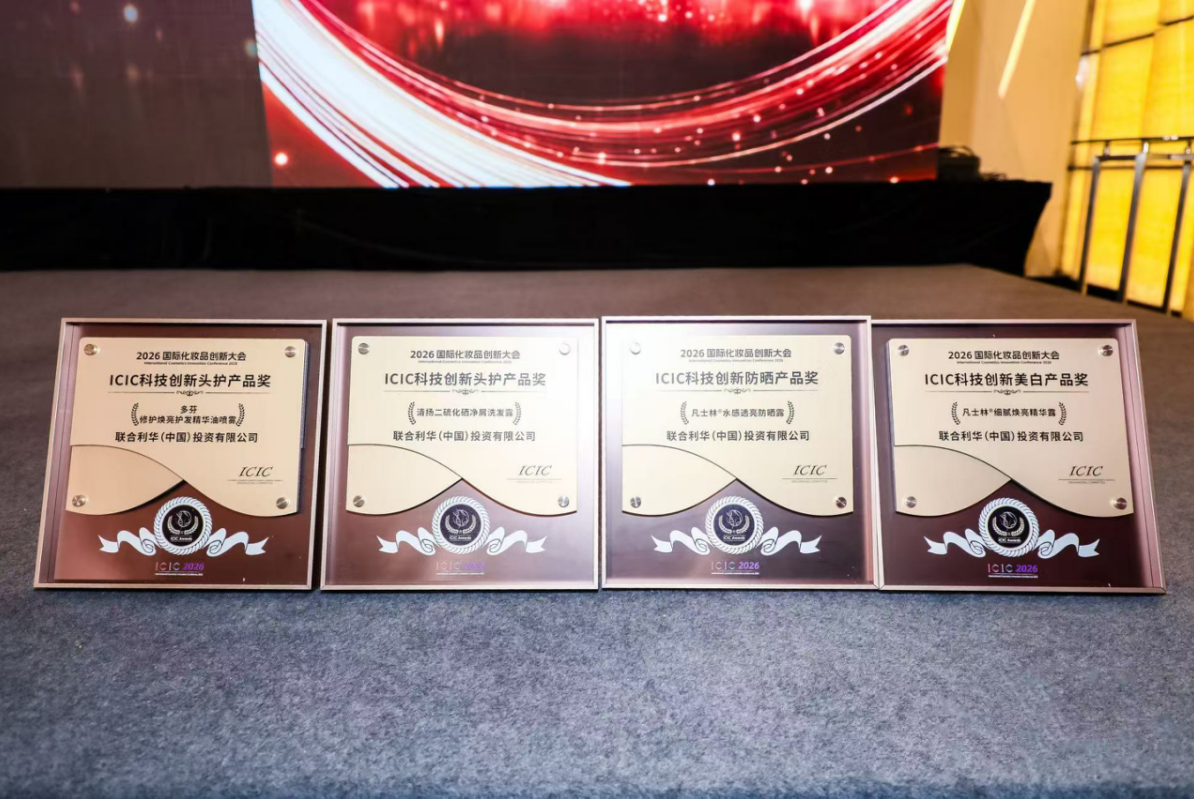 日前,ICIC 2026国际化妆品创新大会上,联合利华旗下核心美妆与健康品牌,凭借多项创新成果一举斩获四项大奖。其中DOVE多芬紫外线修护及焕亮系列,及CLEAR清扬头皮学专研系列斩获ICIC科技创新头护产品奖;Vaseline凡士林水润焕亮精华身体露荣获ICIC 科技创新美白产品奖,而Vaseline凡士林水感透亮防晒露则获得ICIC科技创新防晒产品奖。