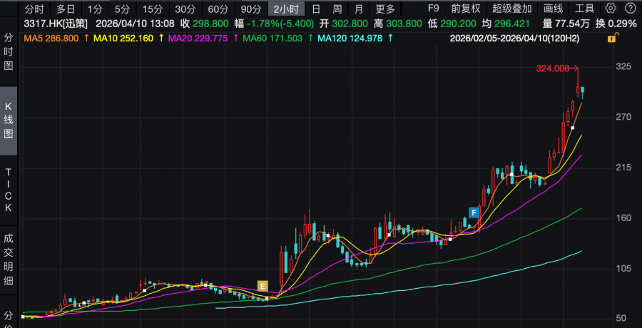 4月10日,迅策(03317.HK)盘中一度上涨12.5%,市值突破1000亿港元。